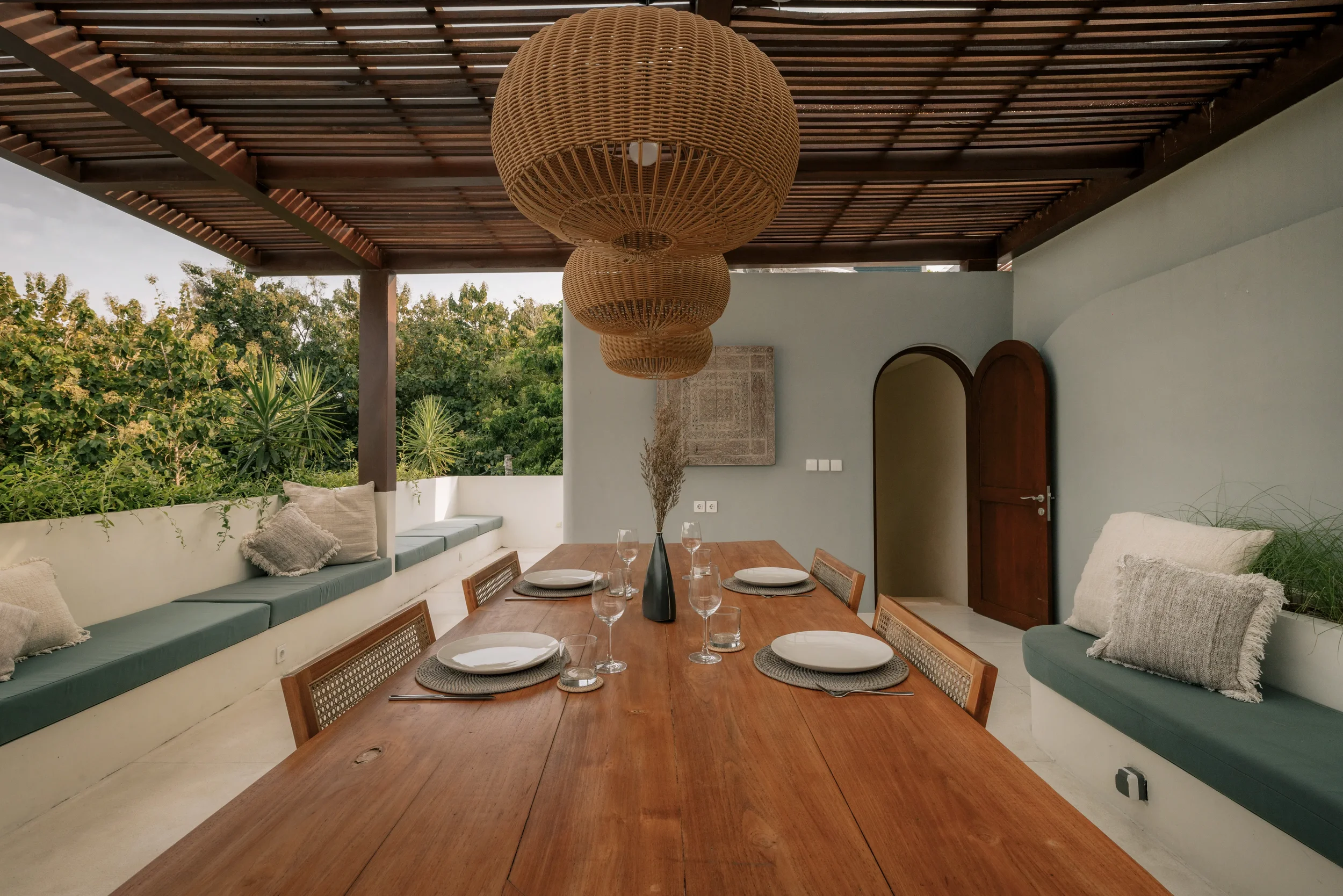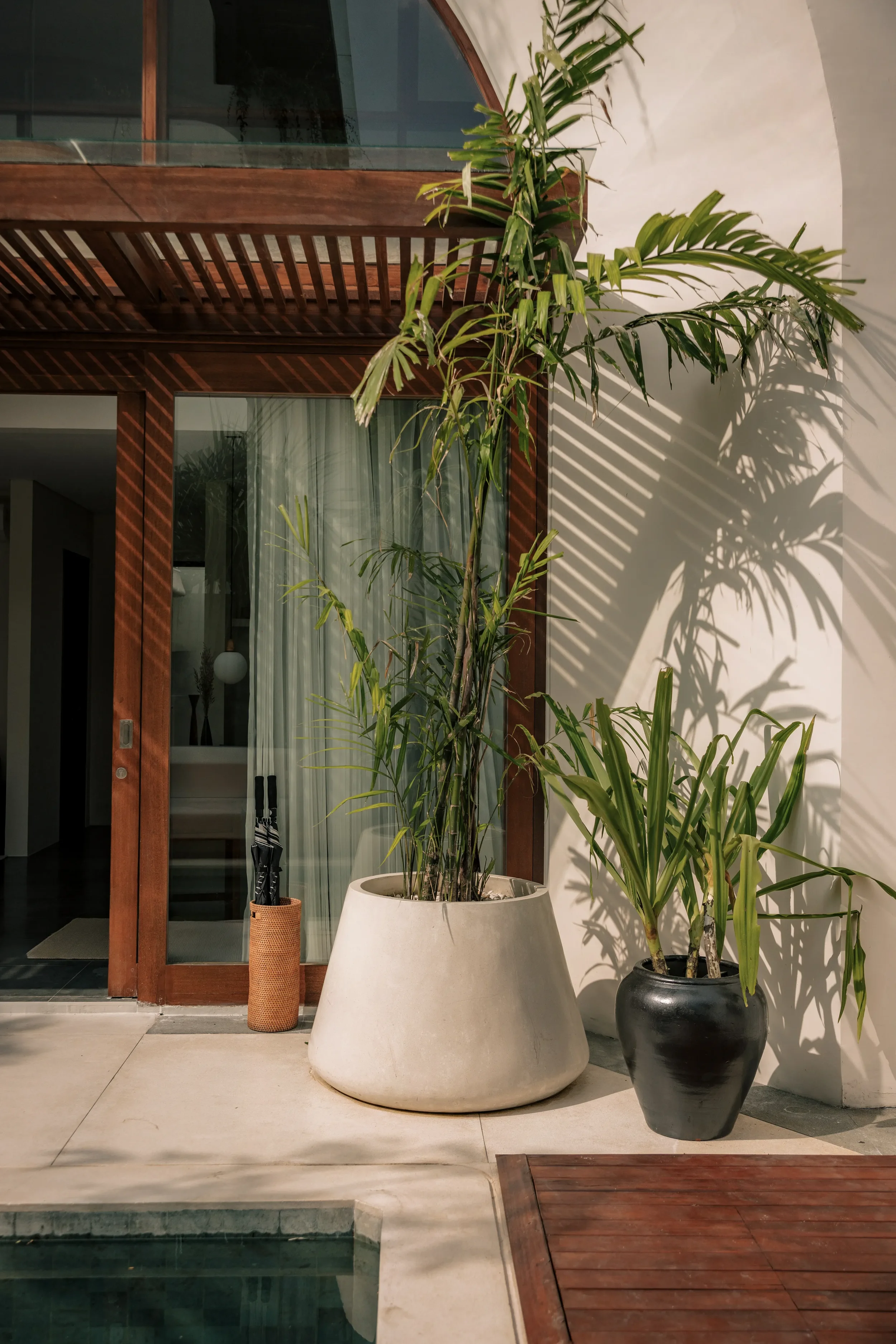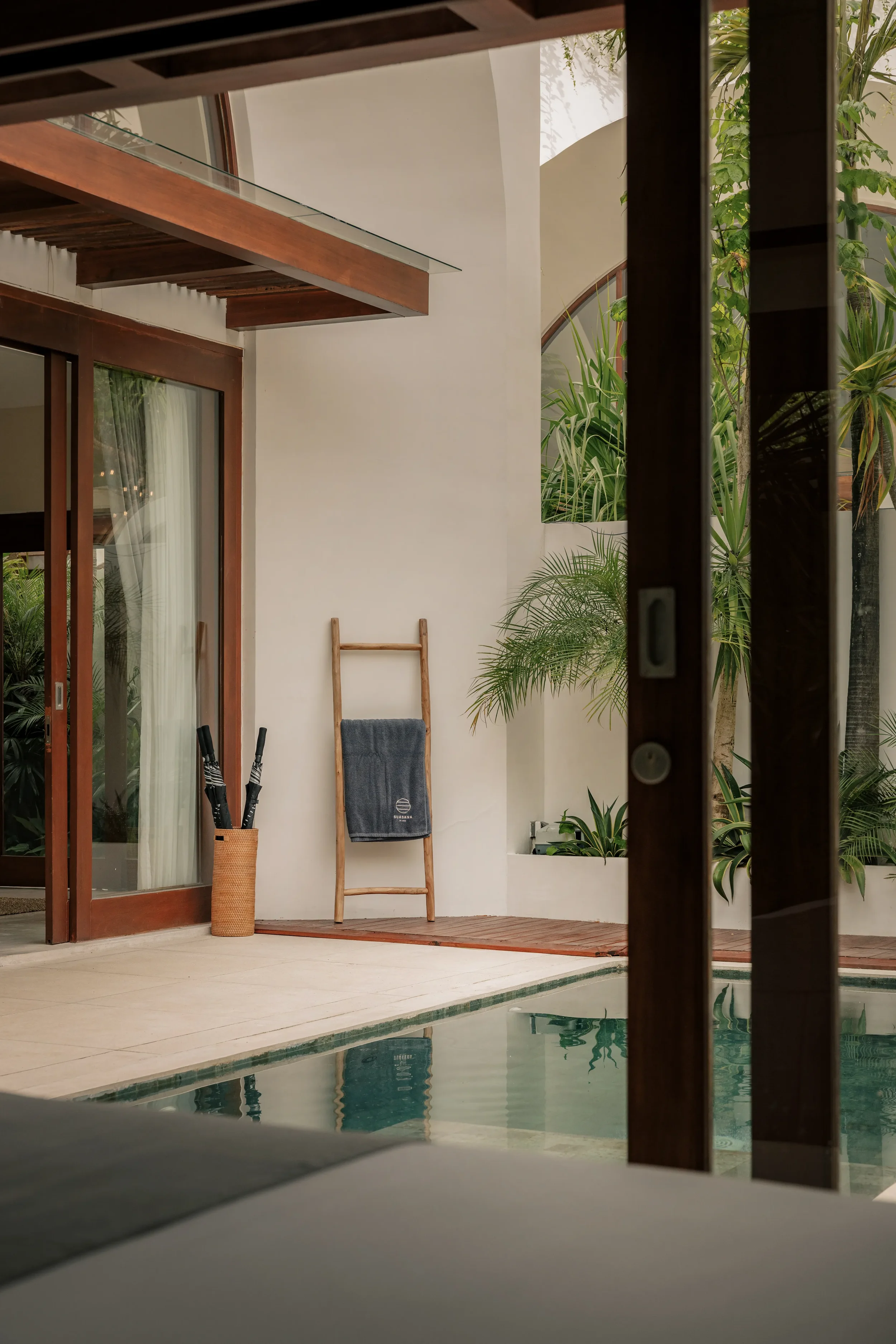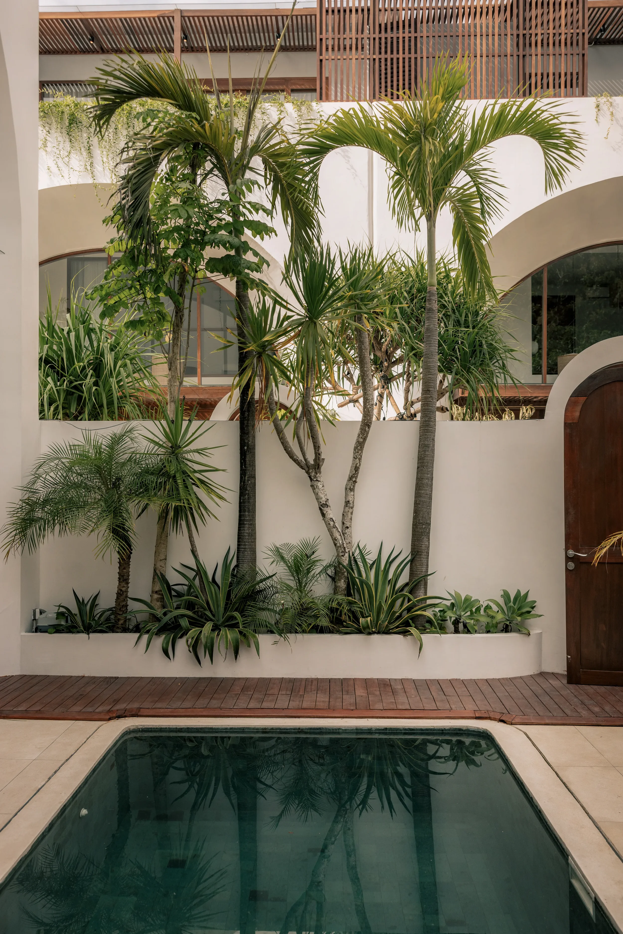 Two bedrooms linked by a shared centre. Spacious open-plan living extends to a tropical garden, private pool, and large rooftop terrace. This layout supports connection and uninterrupted rest.