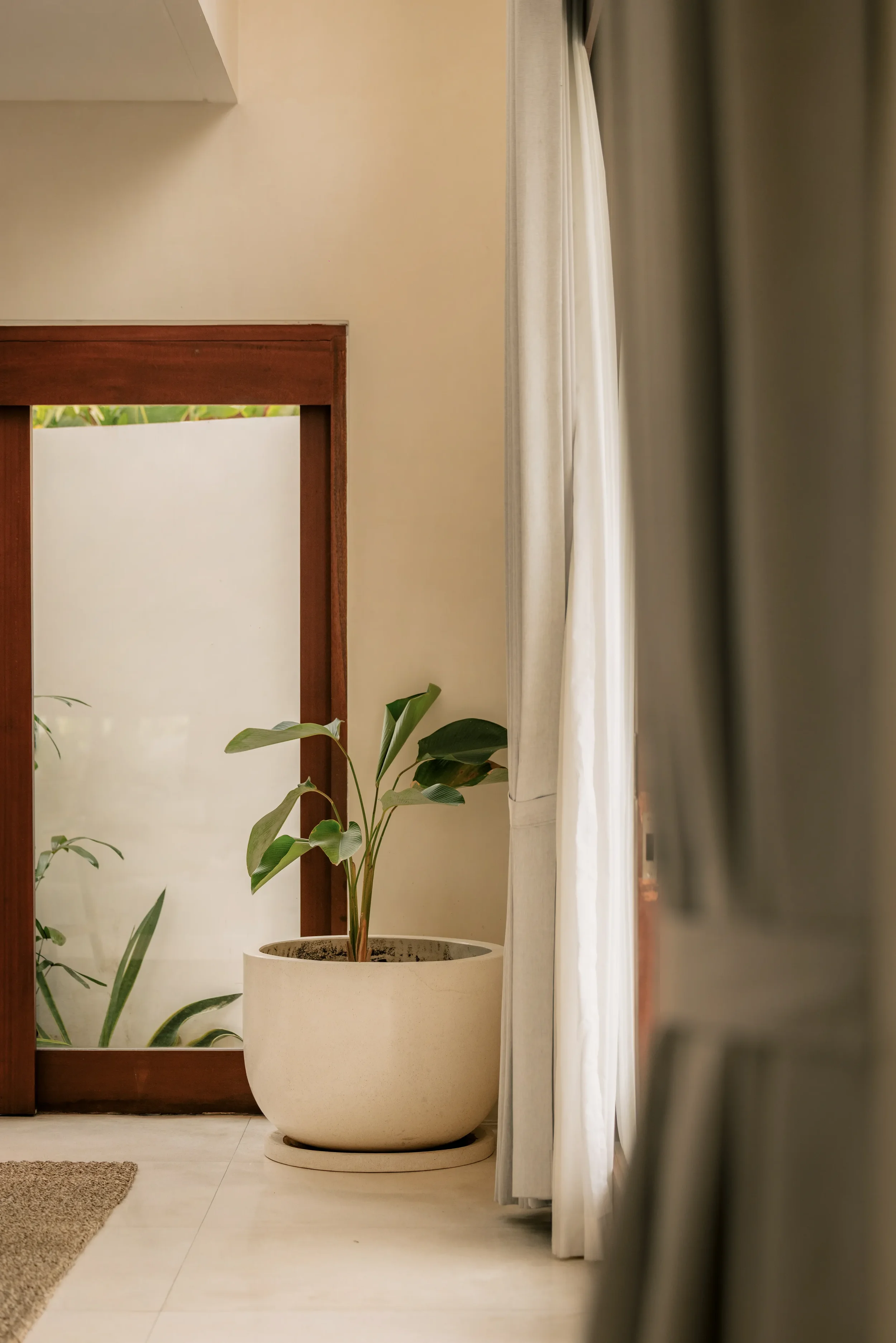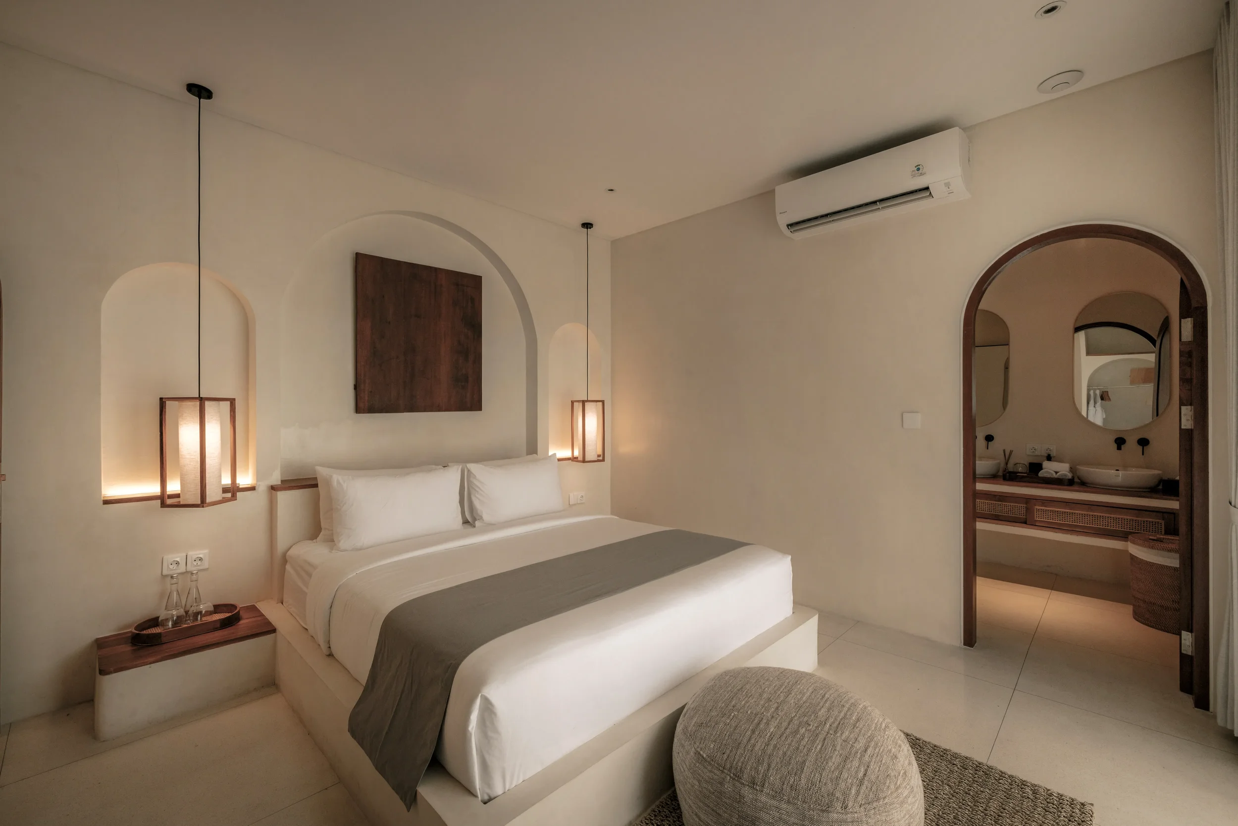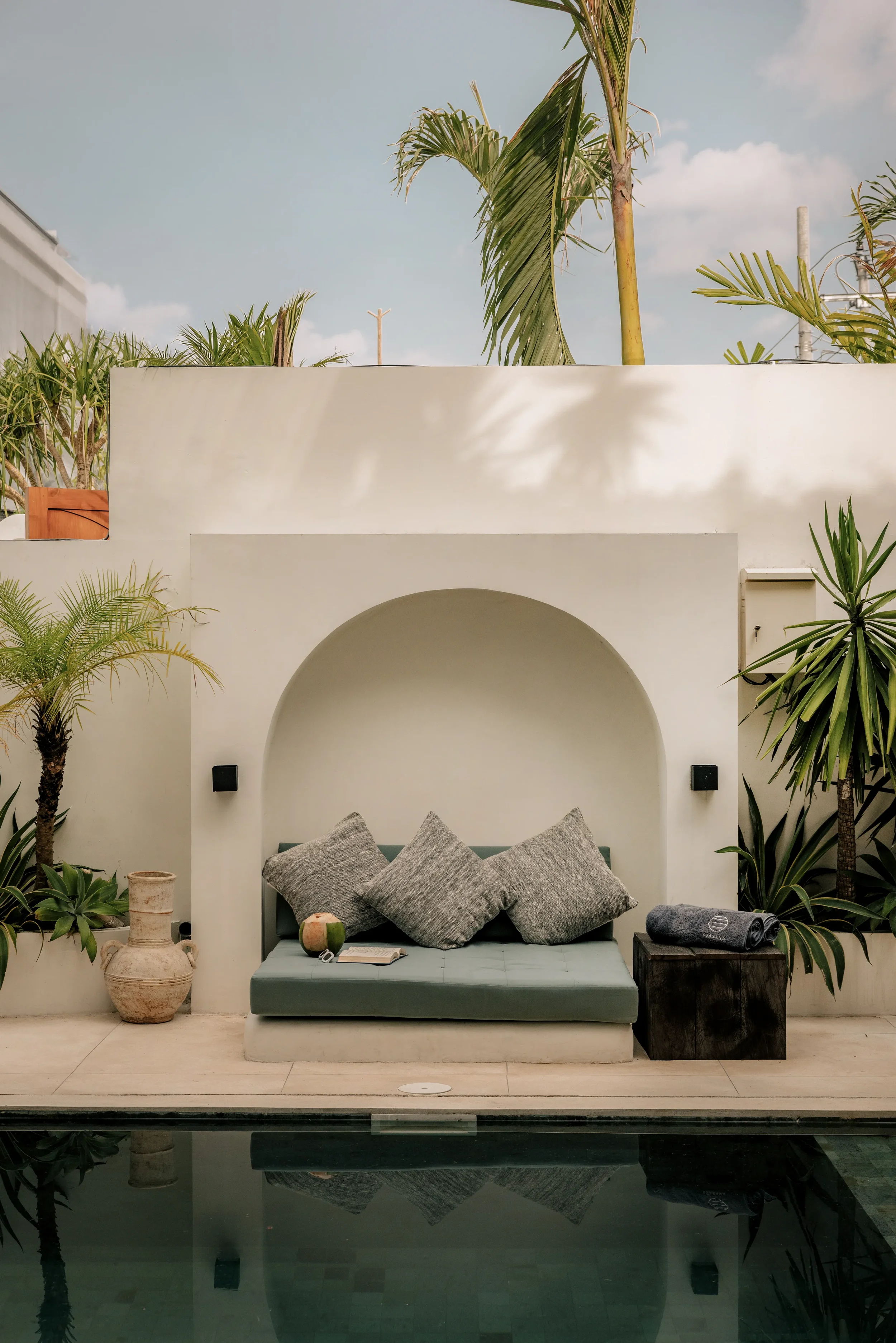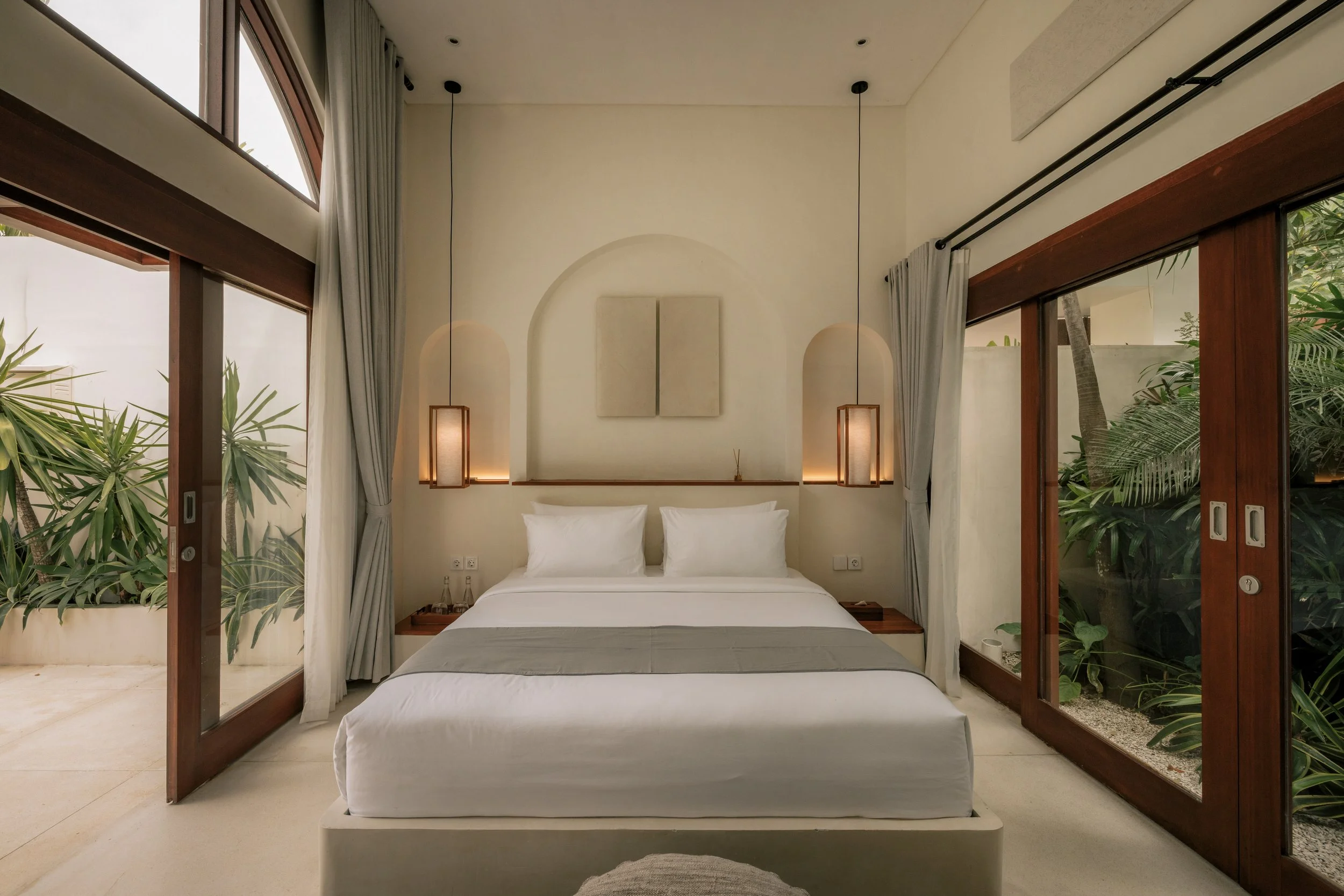 Two bedrooms linked by a shared centre. Spacious open-plan living extends to a tropical garden, private pool, and large rooftop terrace. This layout supports connection and uninterrupted rest.