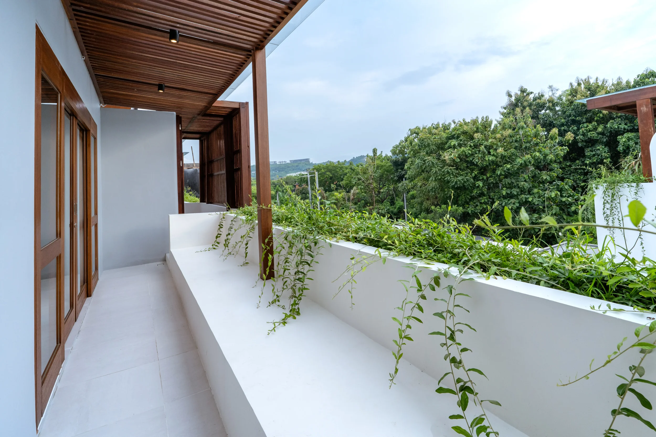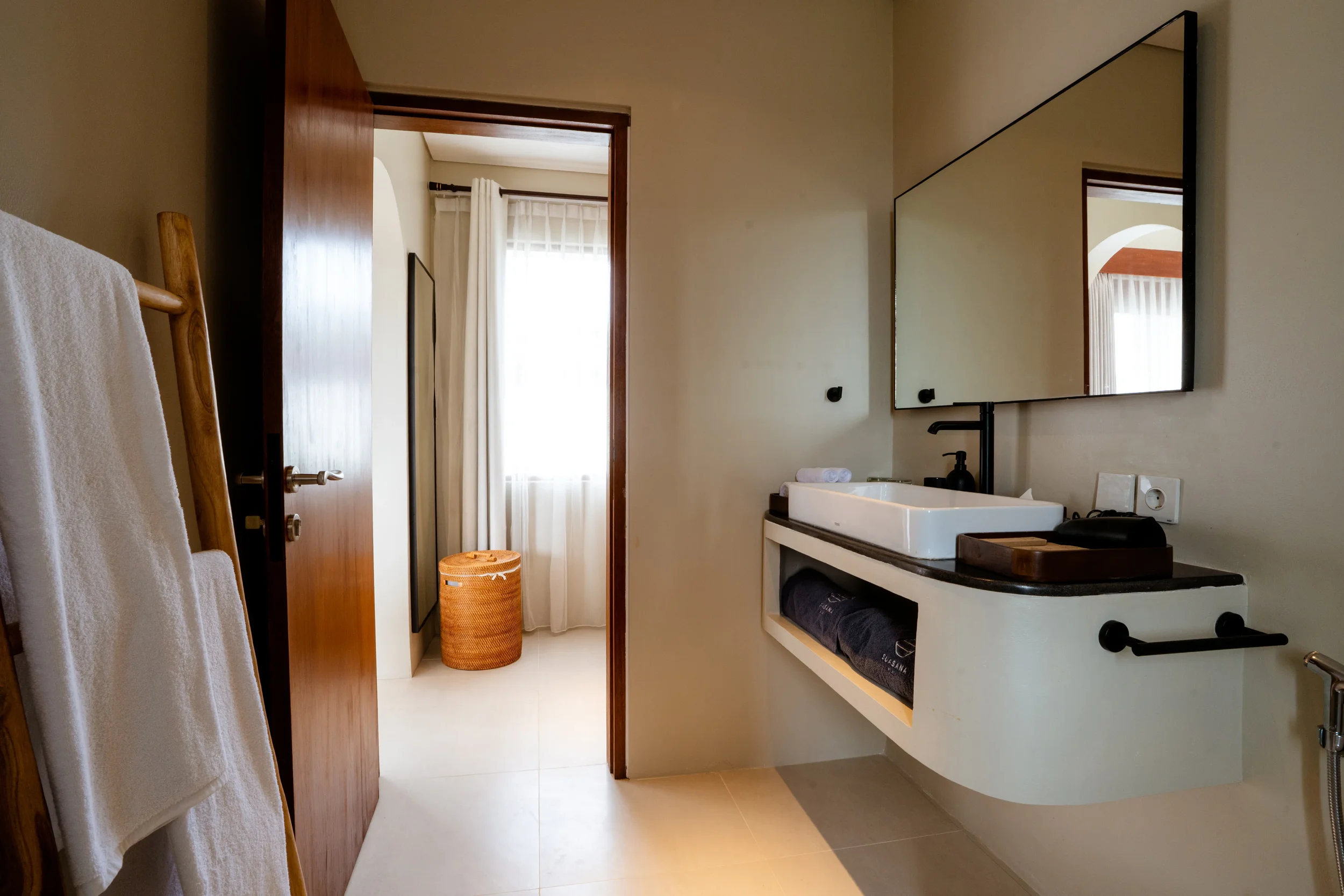 The penthouse suites sit at the highest and quietest point of the grounds. A canopy-covered terrace open to the sky and the distant ridges of Bali’s volcanoes. Inside, the suite is designed to support calm focus and uninterrupted rest.