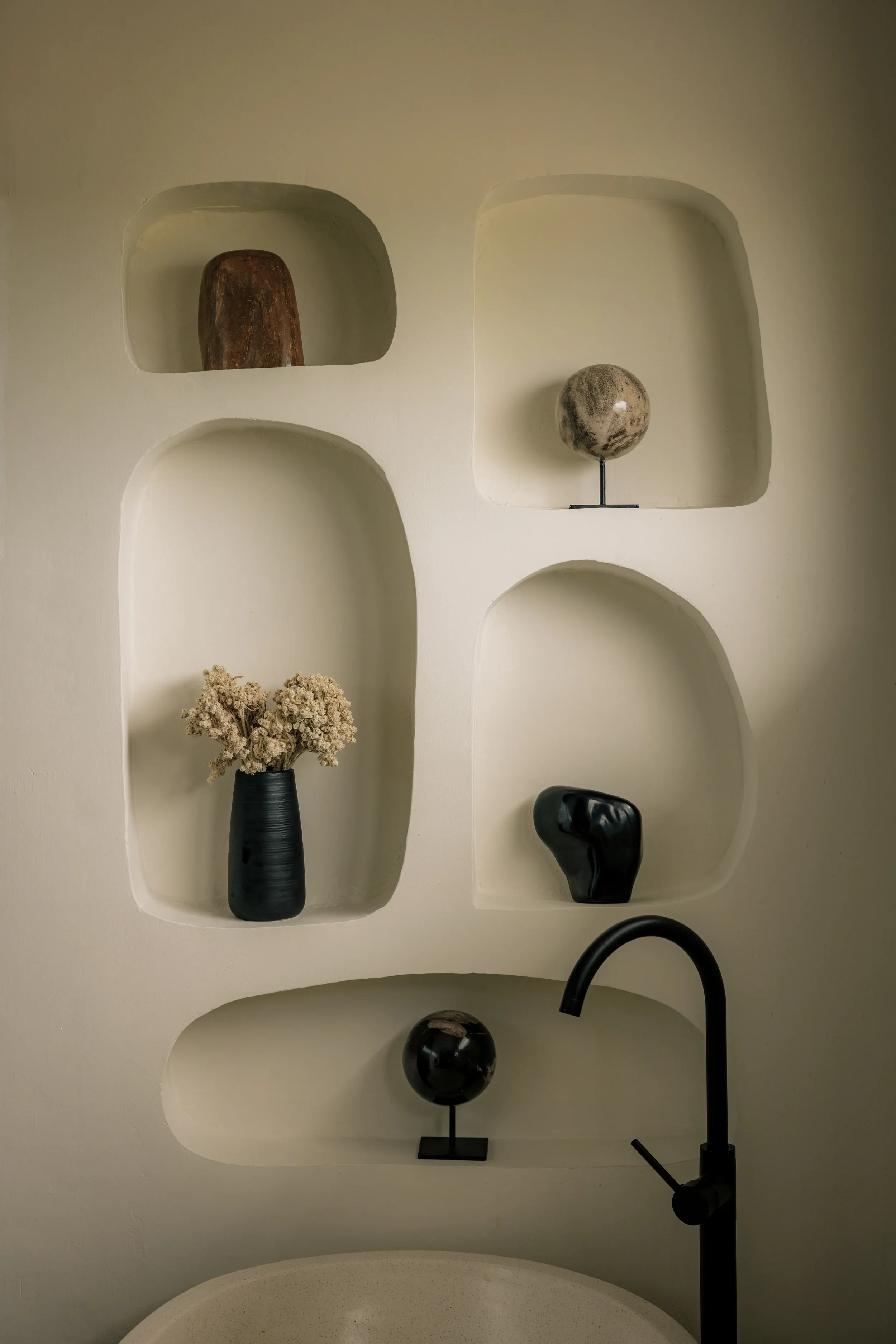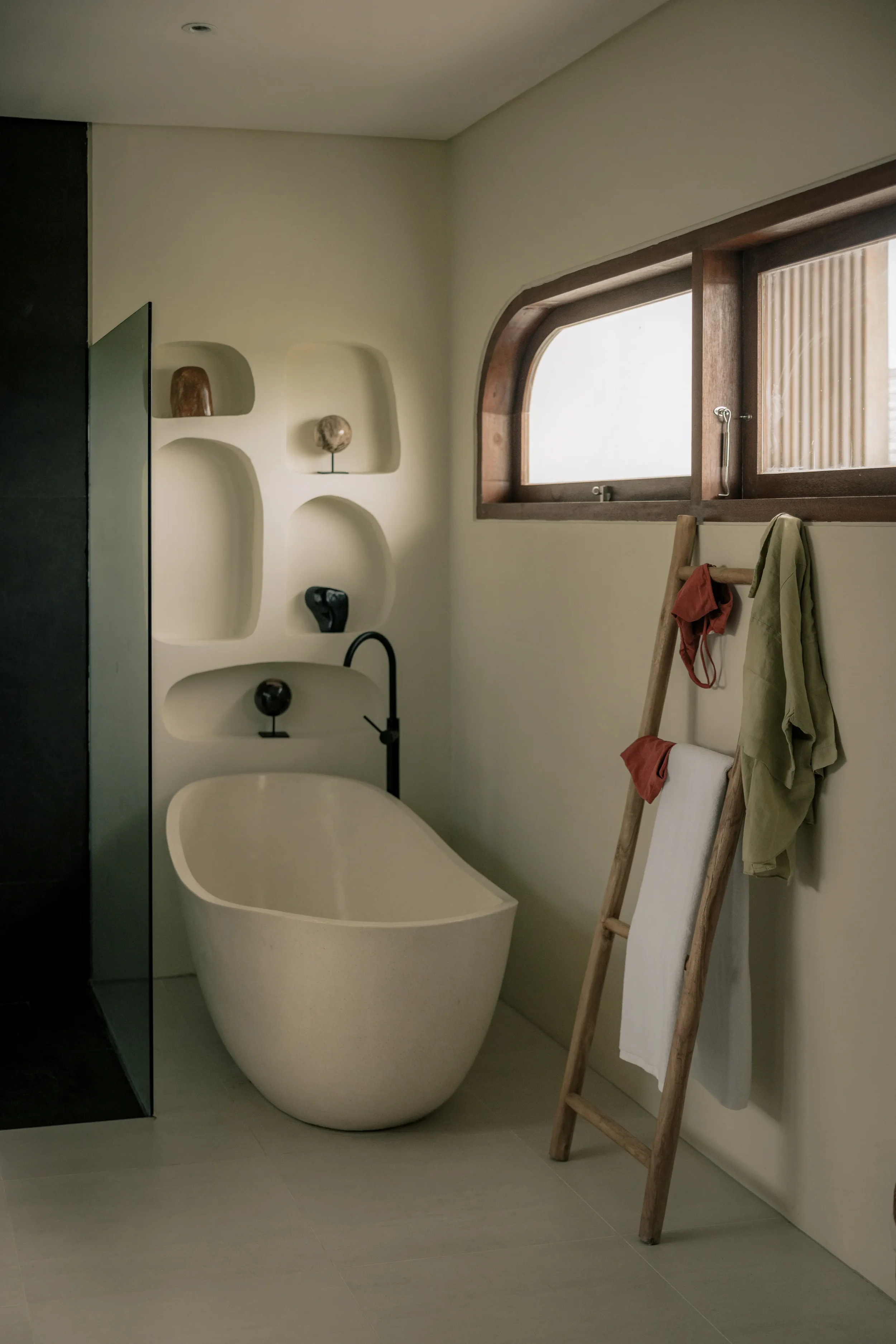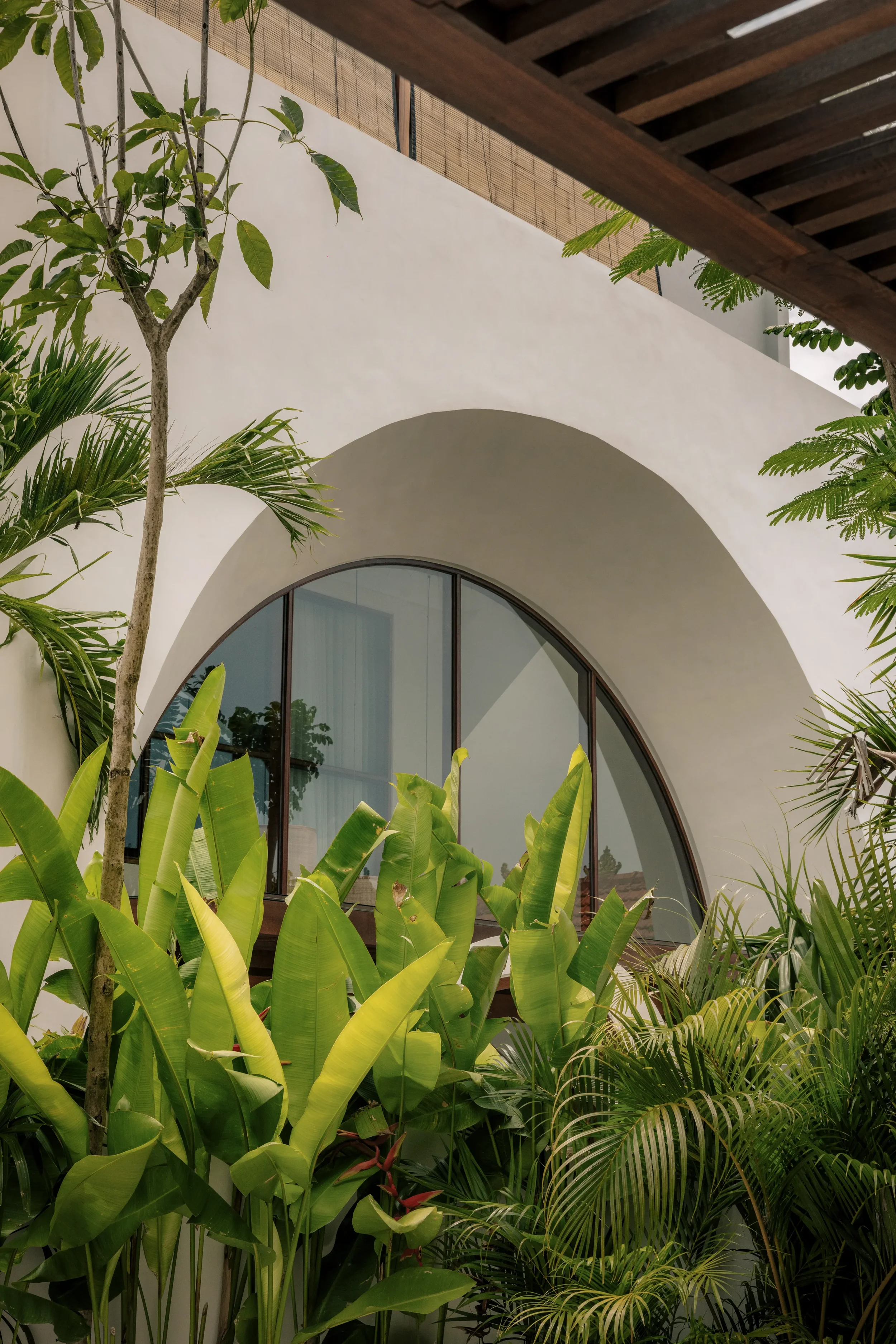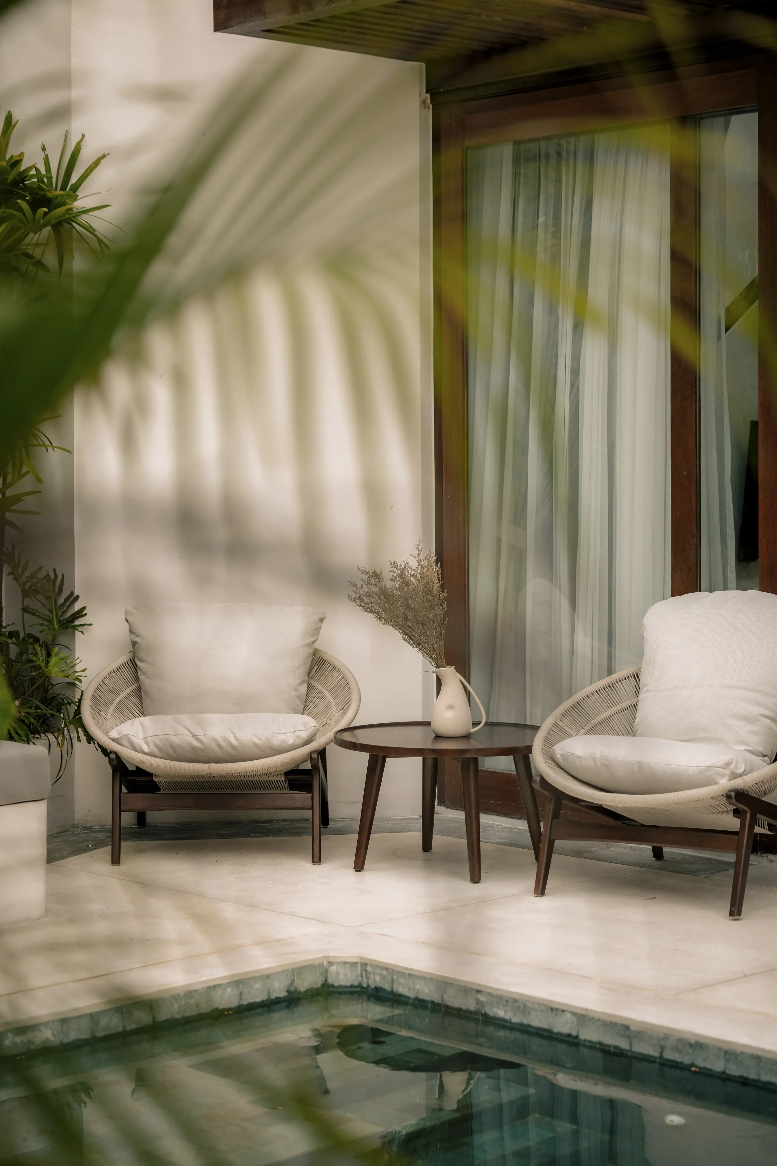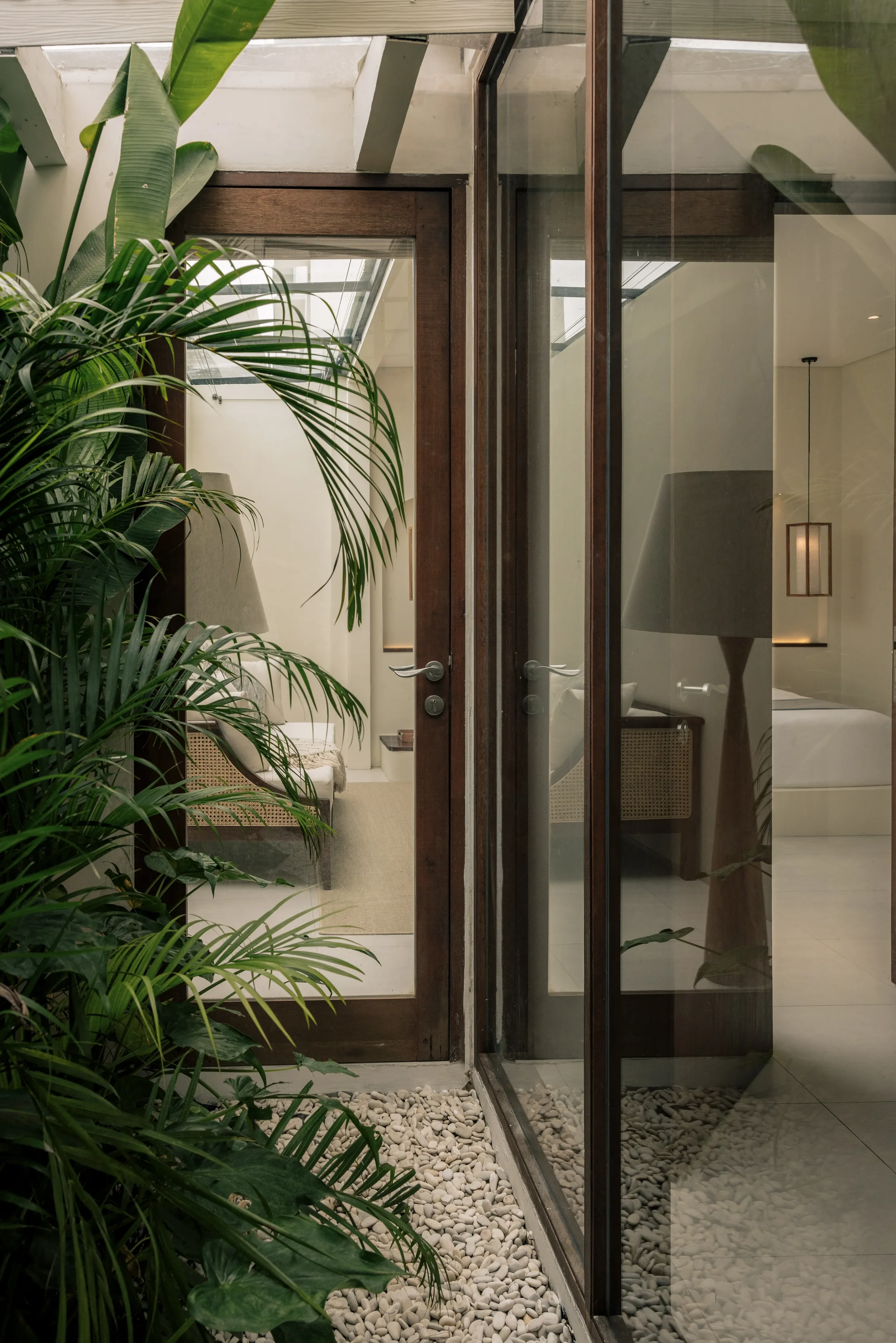 A three-bedroom penthouse villa with panoramic views and a private pool framed by verdant greenery. The terrace opens to the sky and the distant ridges of Bali’s volcanoes. The layout offers space to gather and room to rest.